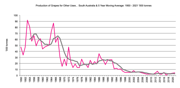 Production of grapes,Other Uses ( fresh, dried) '000 tonnes,5 year moving average