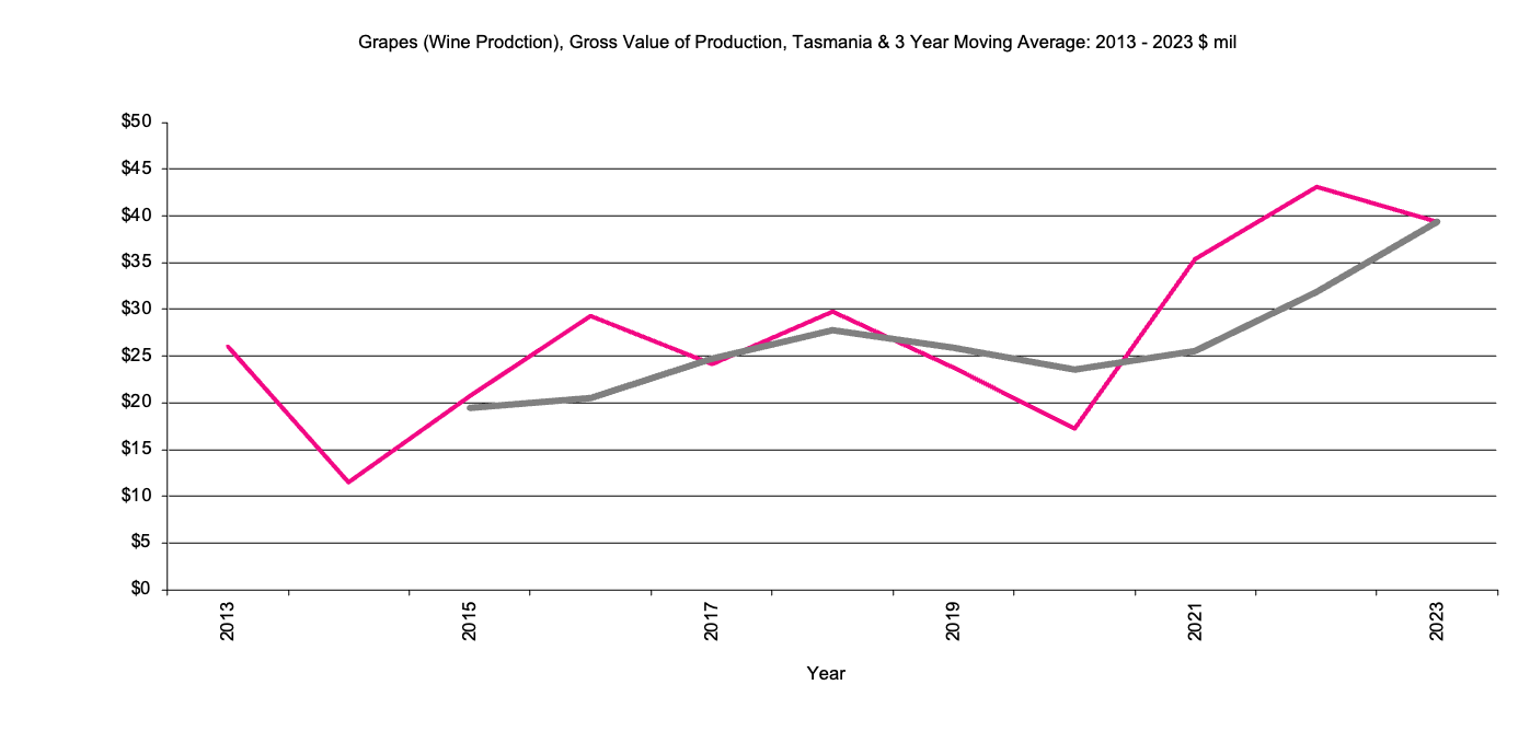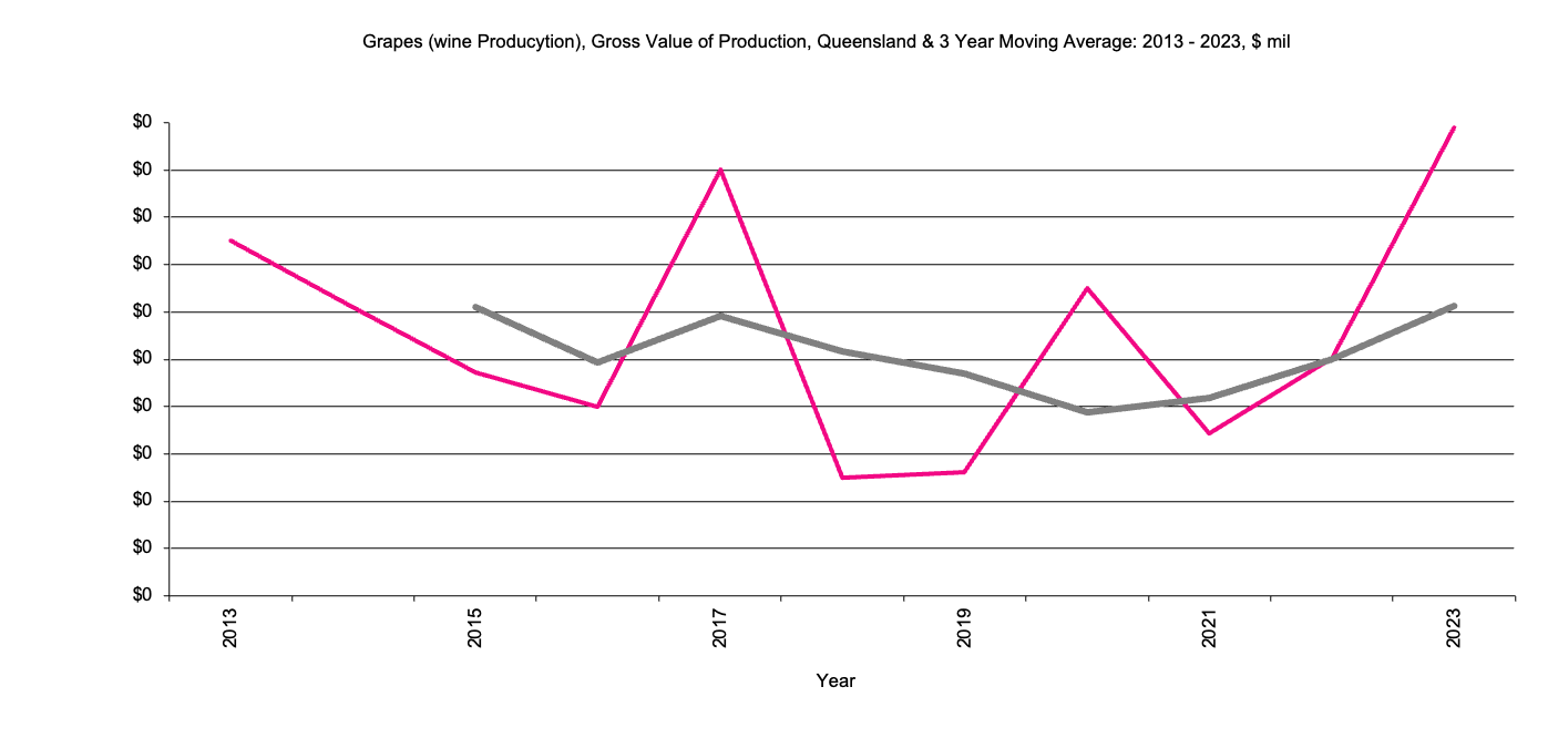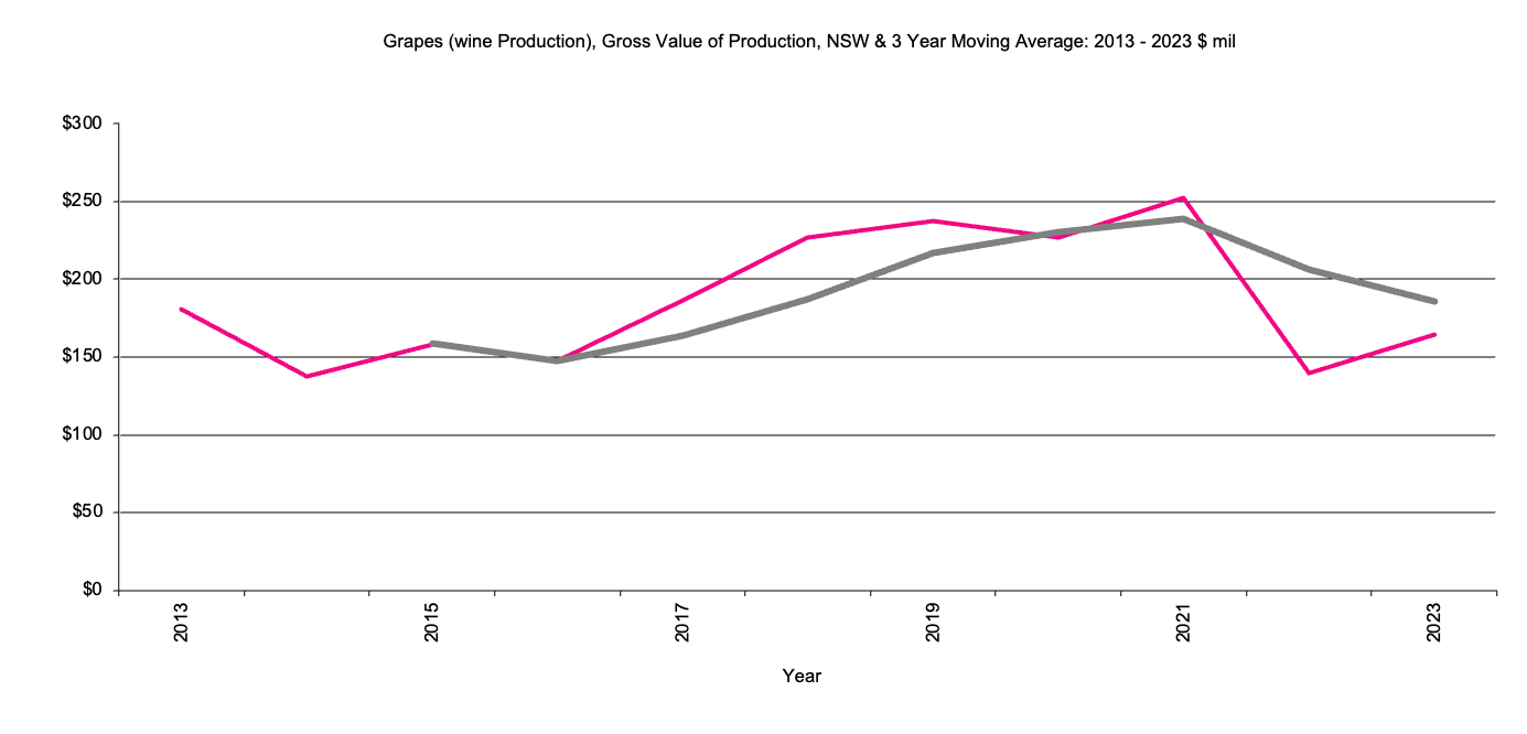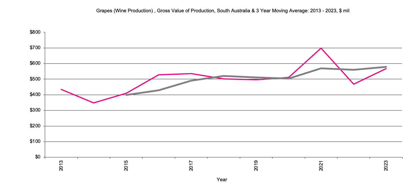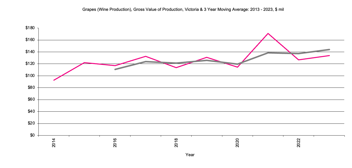 Agricultural Data for Australia, Grapes for Wine, Gross Value of Production by State.