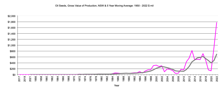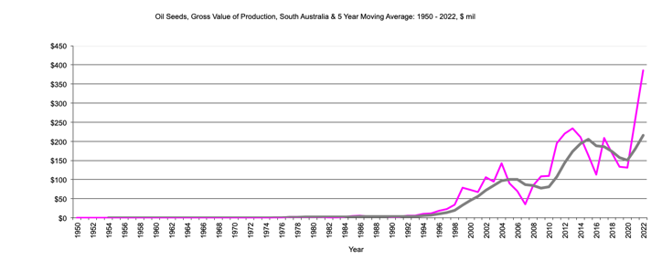 Oil Seeds - Gross Value of production, $m 5 year moving average