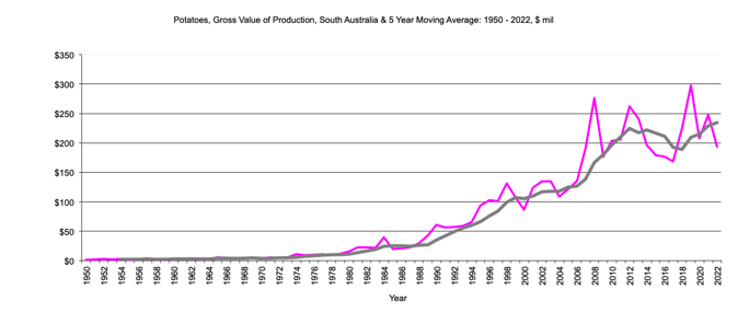 South Australia Potatoes Gross Value Production graph