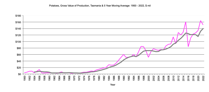Tasmania Potatoes, Gross Value Production data