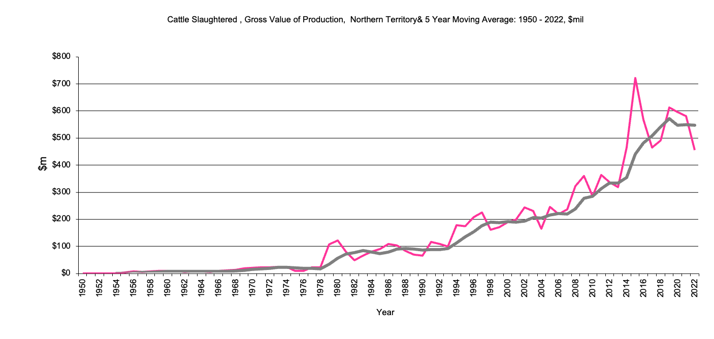 Northern Territory Cattle Slaughtered, Gross Value Production graph |