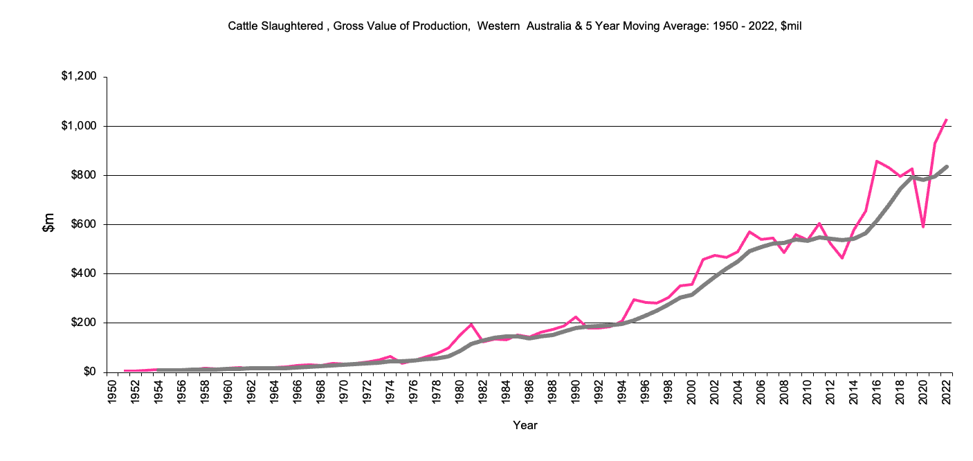 Western Australia Cattle Slaughtered, Gross Value Production graph |