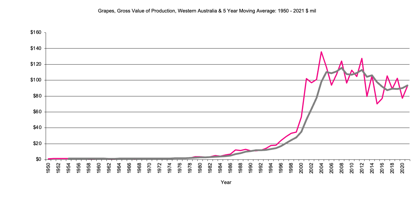Western Australia Grapes, Gross Value Production graph