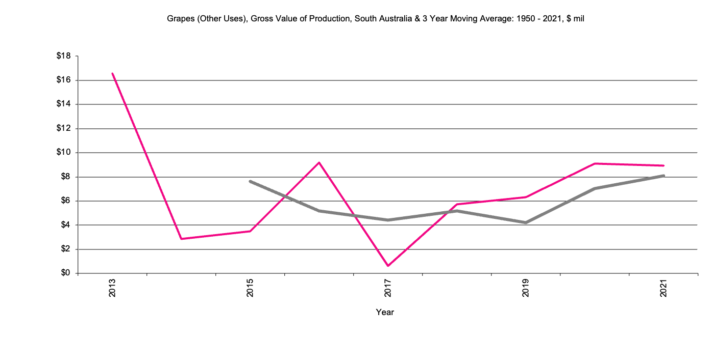 South Australia Grapes for Other Uses, Gross Value Production graph |