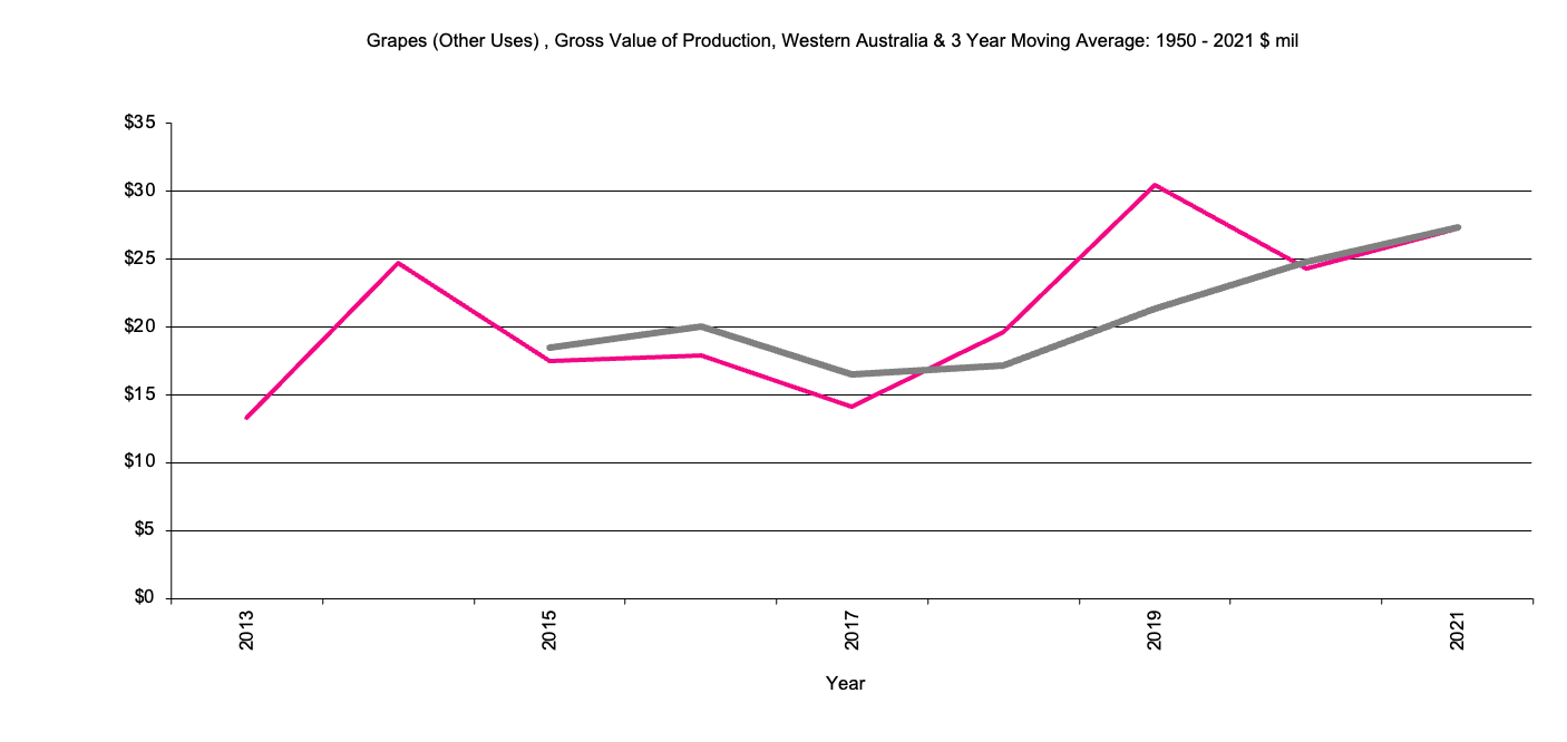 Western Australia Grapes for Other Uses, Gross Value Production graph |