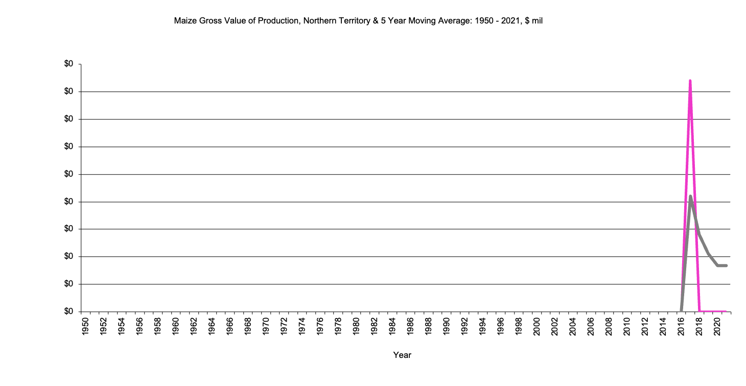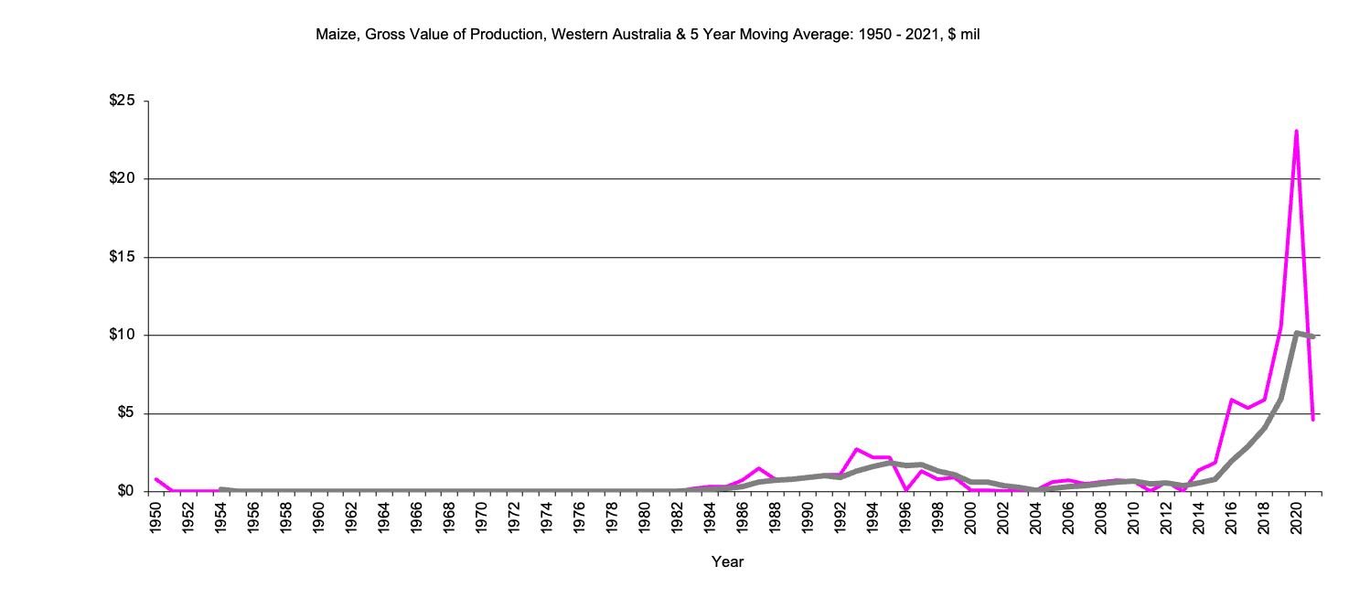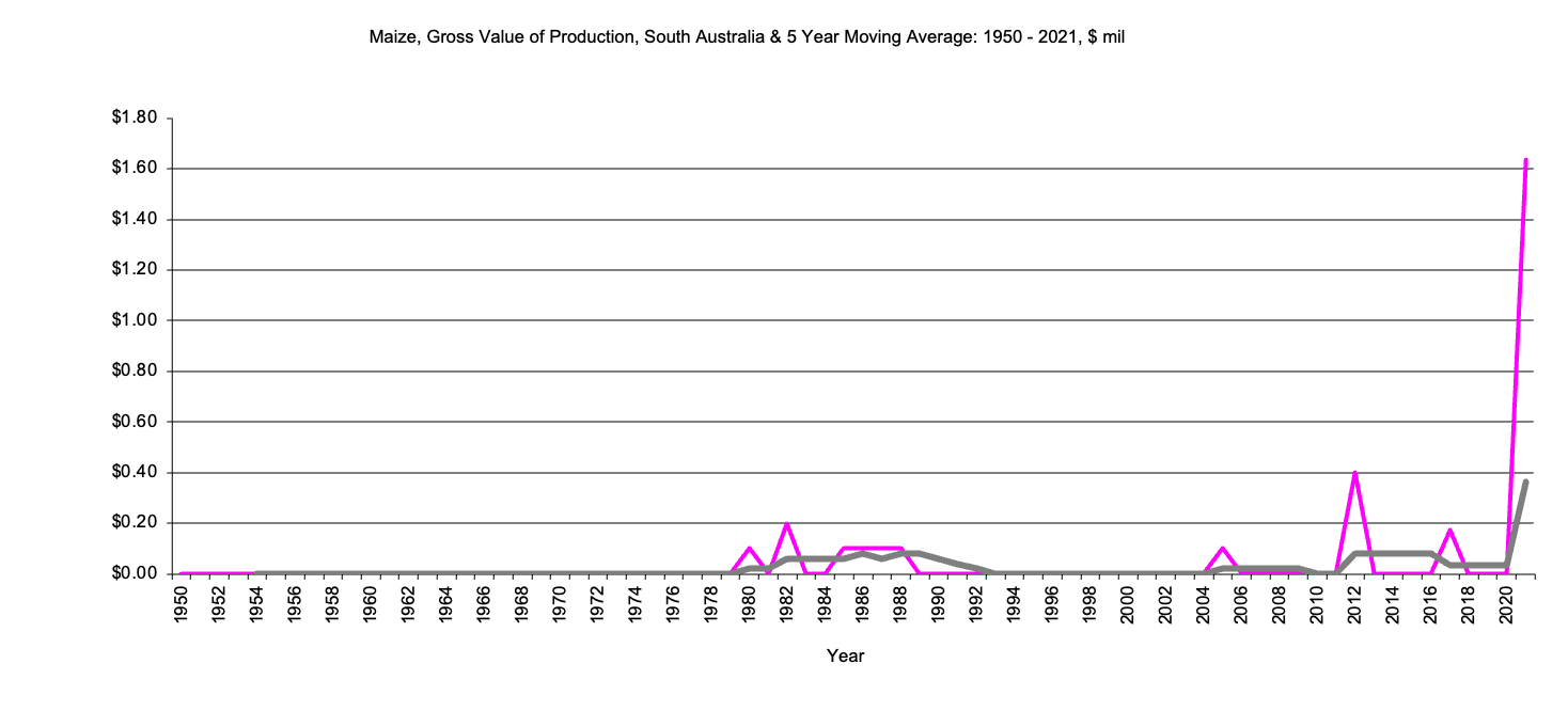 "Maize - Gross Value of production, $m, 5 year moving average"