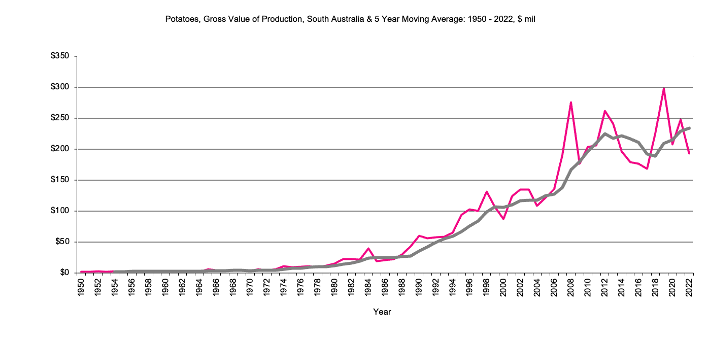 South Australia Potatoes Gross Value Production graph |