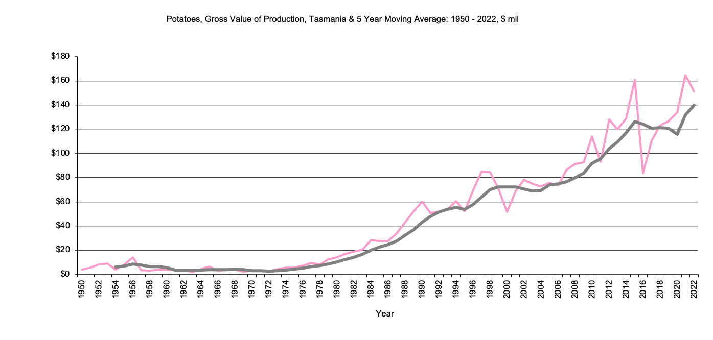 Tasmania Potatoes Gross Value Production graph |