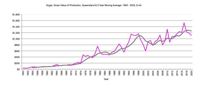 Queensland Sugar, Gross Value Production graph |