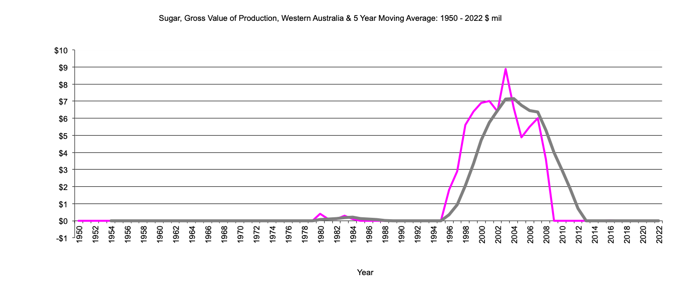 Western Australia Sugar, Gross Value Production graph |