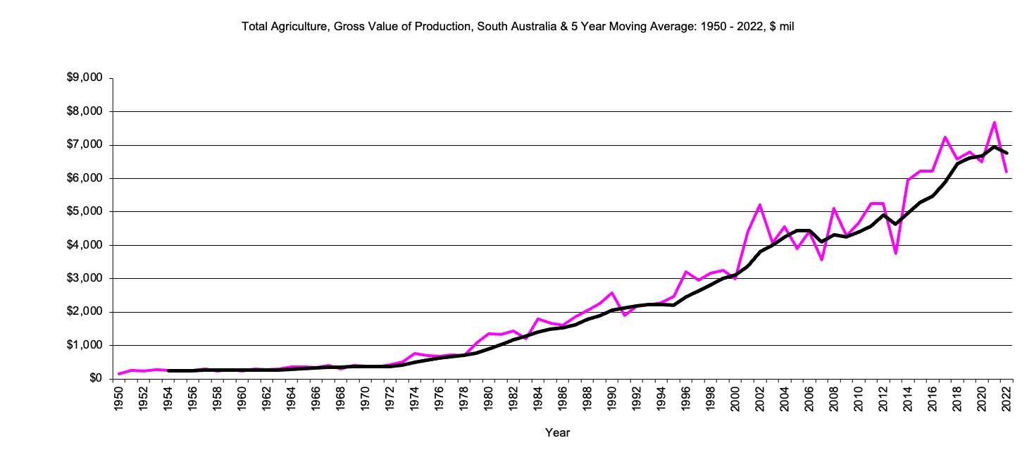 South Australia, Total Agriculture, Gross Value Production graph |