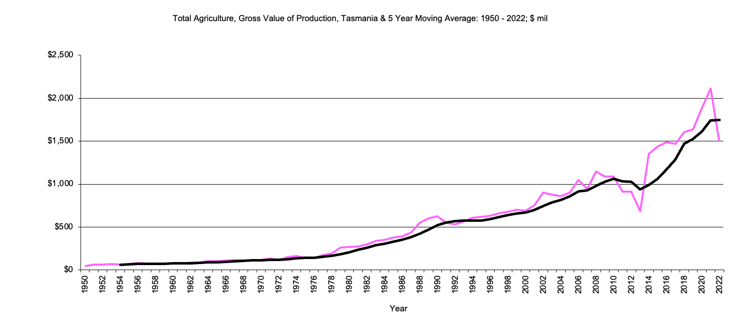 Tasmania, Total Agriculture, Gross Value Production graph |