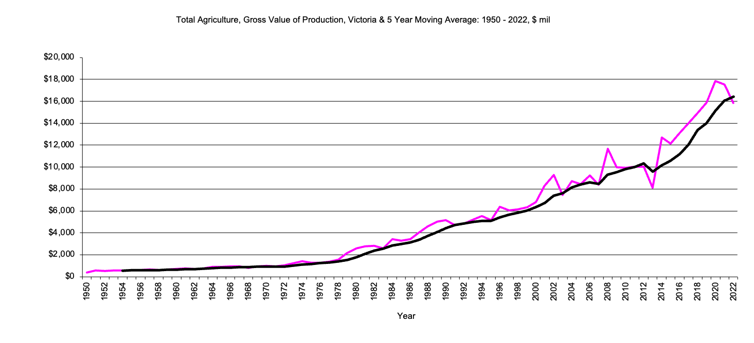 Victoria, Total Agriculture, Gross Value Production graph |
