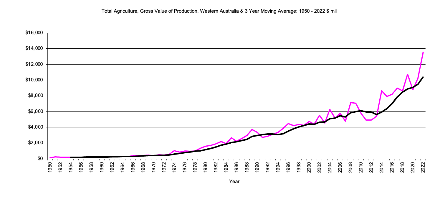 Western Australia, Total Agriculture, Gross Value Production graph |