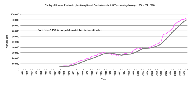 South Australia Number of Chickens slaughtered graph |