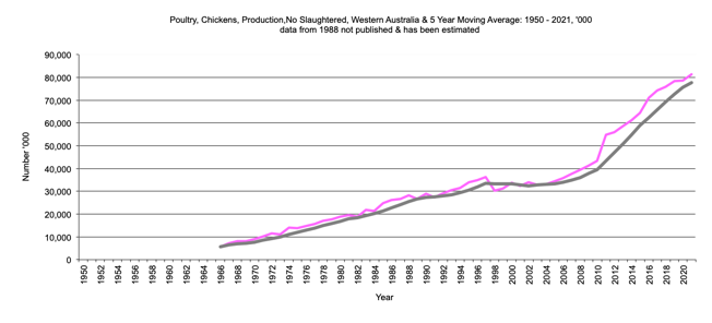 Western Australia Number of Chickens slaughtered graph |