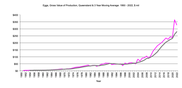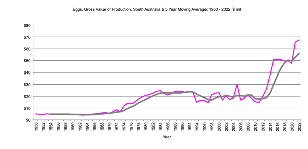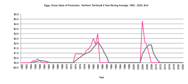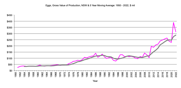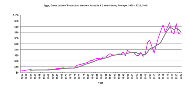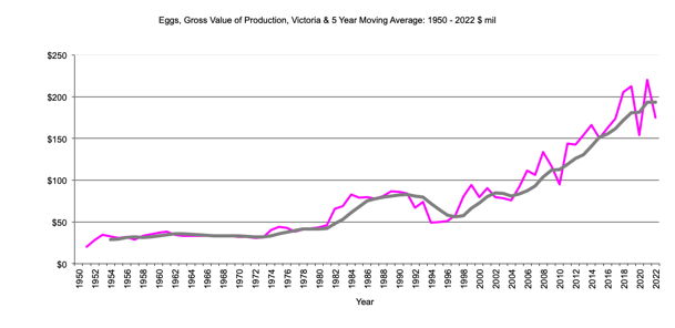 Agricultural Data for Australia, Value of Production of Eggs by State.