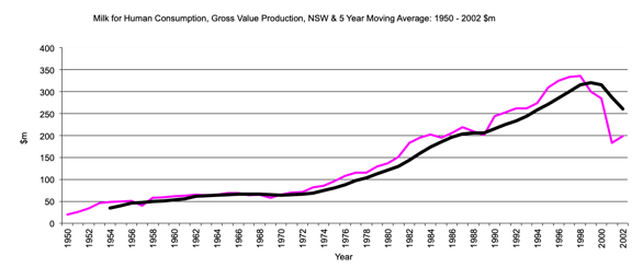 NSW Value of Production of Milk for Human Consumption