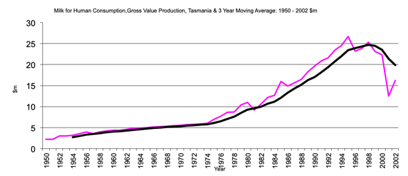Tasmania Gross Value of Production of Milk for Human Consumptiongraph |