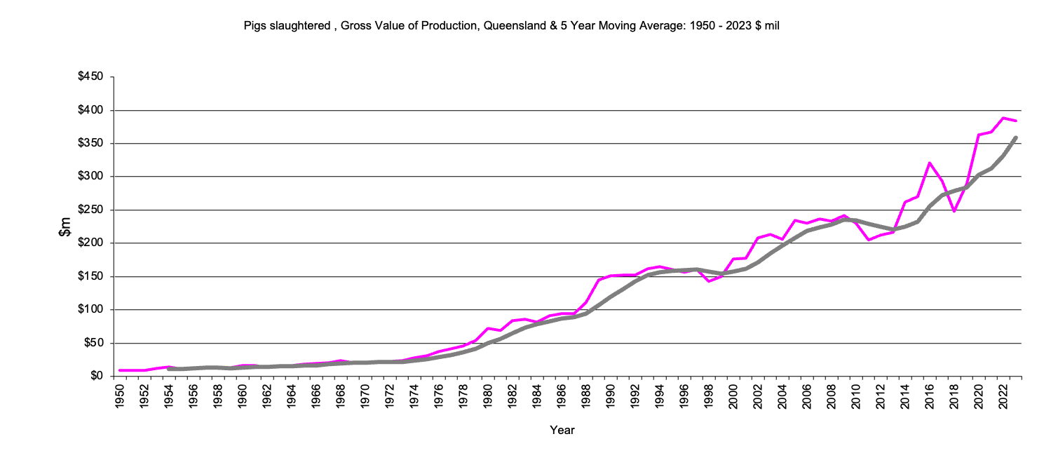 Queensland Pigs slaughtered, Gross Value Production graph |