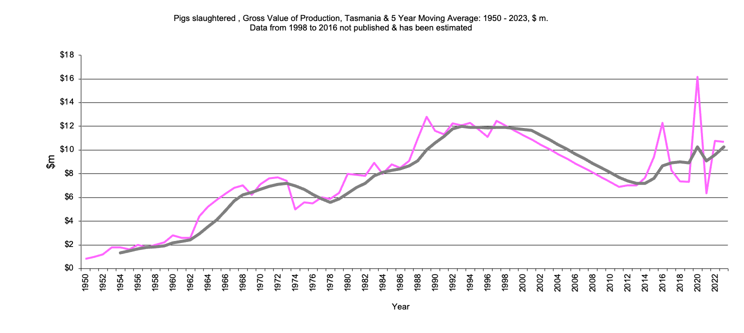 Tasmania Pigs slaughtered, Gross Value Production graph |