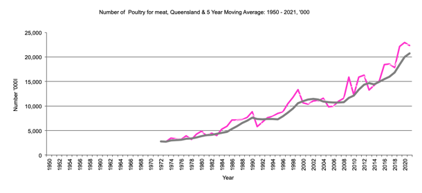 Queensland Number of Poultry for Meat graph |