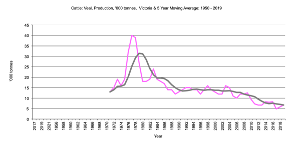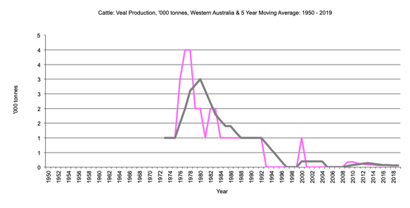 Agricultural Data for Australia, Cattle, Veal Production by State.