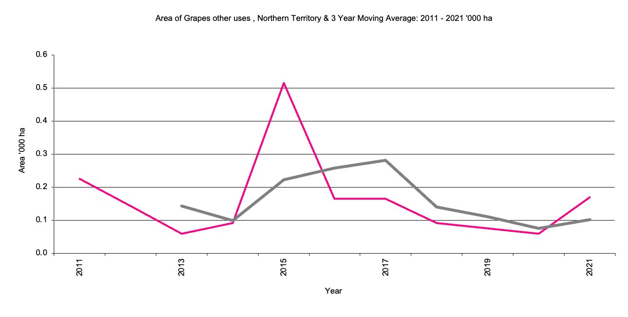 Area of grapes for other uses in '000 hectares, 3 year moving average