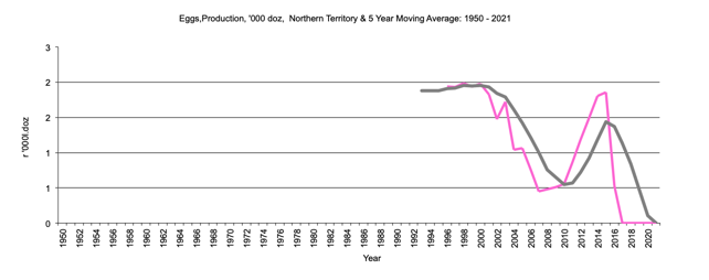 LIVESTOCK PRODUCTION FOR NORTHERN TERRITORY (number Slaughtered: production of meat, wool, eggs) |