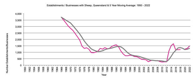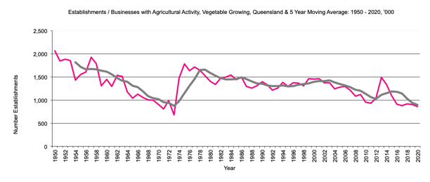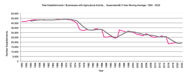 Agricultural Data For Australia, Queensland Agricultural Establishments1950 to Current Data |
