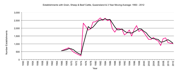 Queensland     establishments with Grain, Sheep & Beef Cattle to 2012     graph |