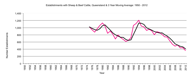 Queensland     establishments with Sheep & Beef Cattle to 2012     graph |