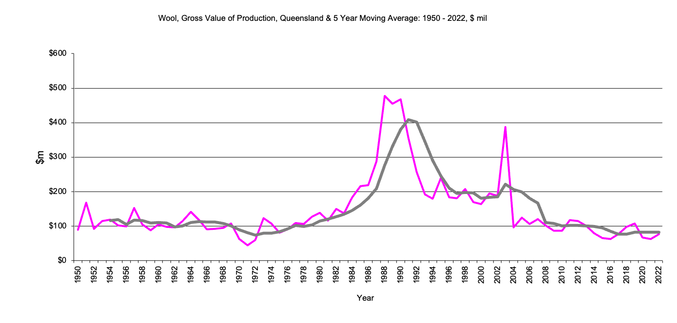 Queensland Wool, Gross Value Production Wool gross value production in $m