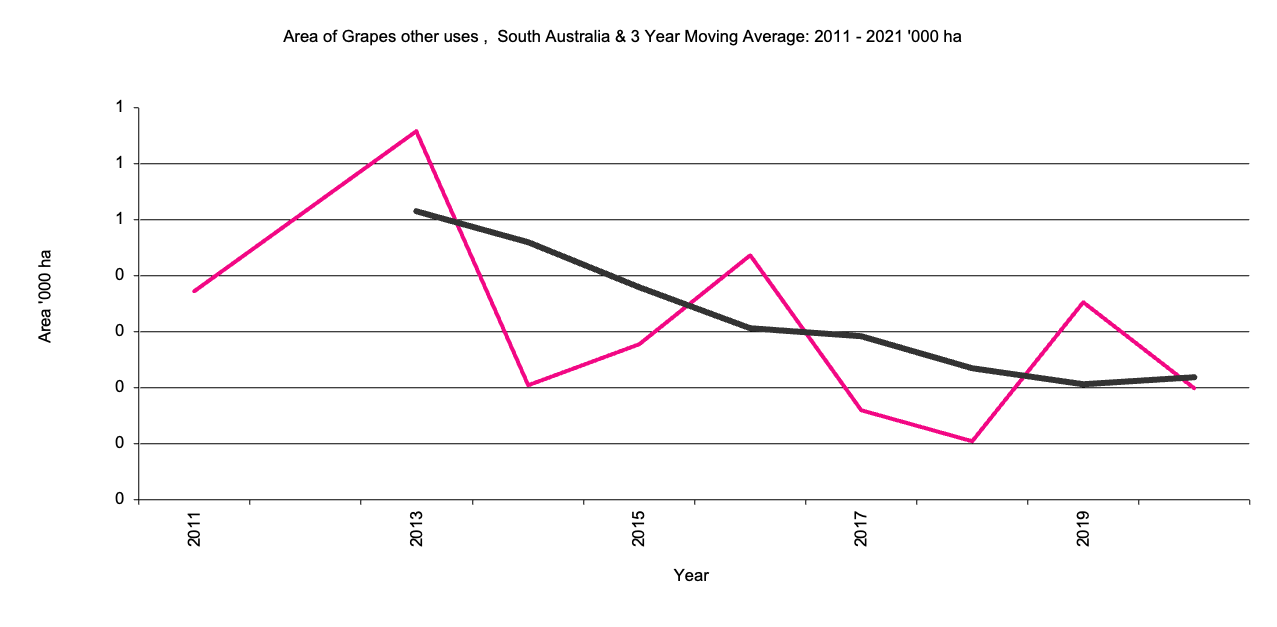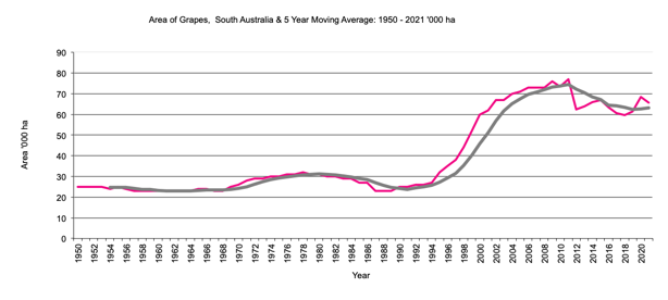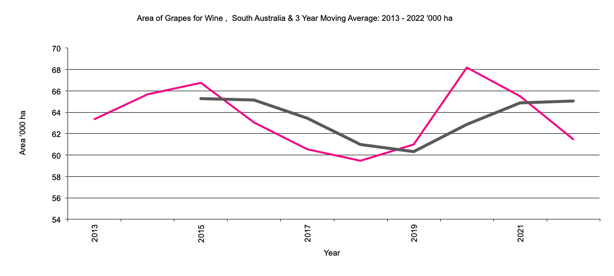 Area of grapes for Wine in '000 hectares, 3 year moving average