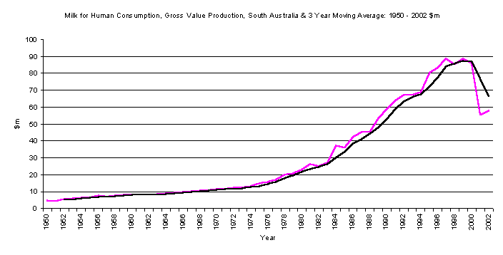 South Australia, Milk for Human Consumption, Gross Value Production