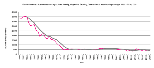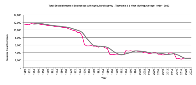 Agricultural Data For Australia, Tasmania Agricultural Establishments1950 to Current Data |
