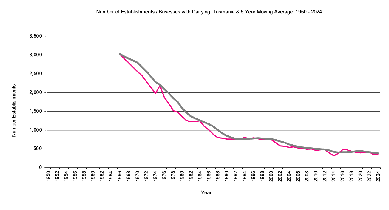 Tasmania     establishments with dairy     graph |