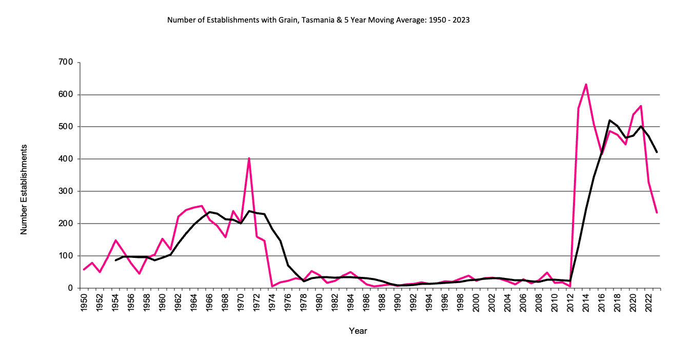 Tasmania     establishments with grain     graph |
