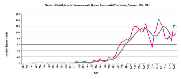 Tasmania     establishments with grapes     graph |