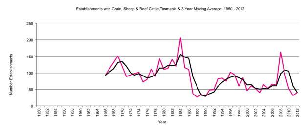 Tasmania     establishments with Grain, Sheep & Beef Cattle to 2012     graph |