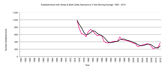 Tasmania     establishments with Sheep & Beef Cattle to 2012     graph |