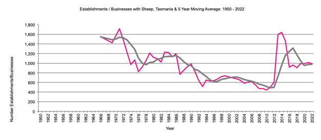 Tasmania     establishments with Sheep     graph |