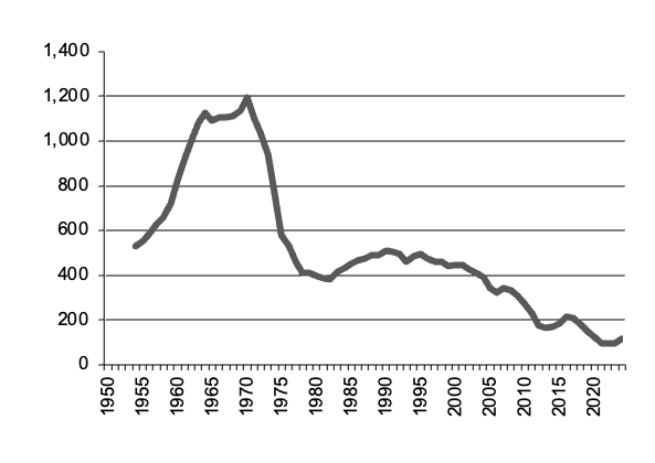 From 1950 to 1971 sheep slaughtered included lambs slaughtered