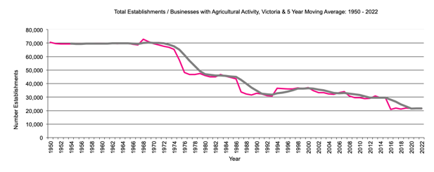 Agricultural Data For Australia, Victoria Agricultural Establishments1950 to Current Data |