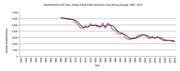 Victoria     establishments with Grain, Sheep & Beef Cattle to 2012     graph |