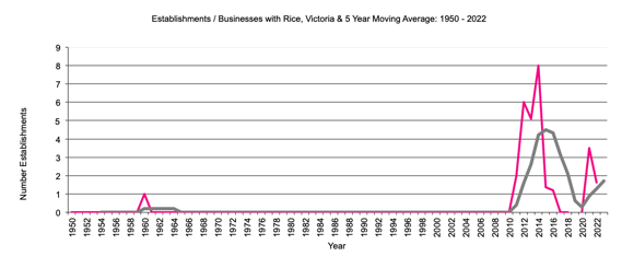 Victoria     establishments with rice growing     graph |