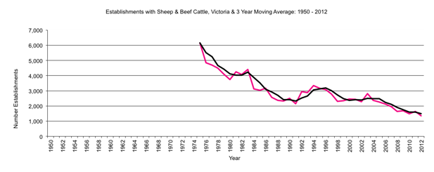 Victoria     establishments with Sheep & Beef Cattle to 2012     graph |