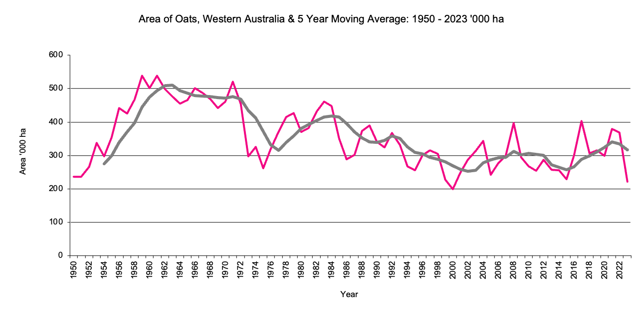 Area of Oats in '000 hectares 5 year moving average