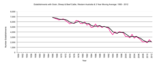 Western Australia Establishments with Grain, Sheep & Beef Cattle to 2012